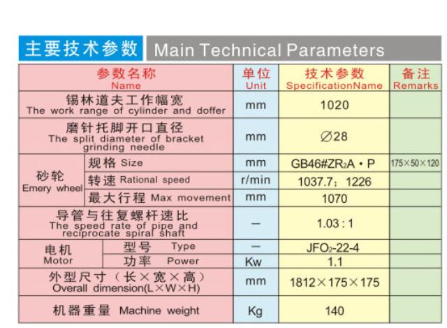 AU154往復(fù)砂輪磨輥機(jī)此磨輥機(jī)為磨礪金屬針布用,適用于梳棉機(jī)幅度為1020mm(40英寸),適用梳毛機(jī)幅度為1660mm