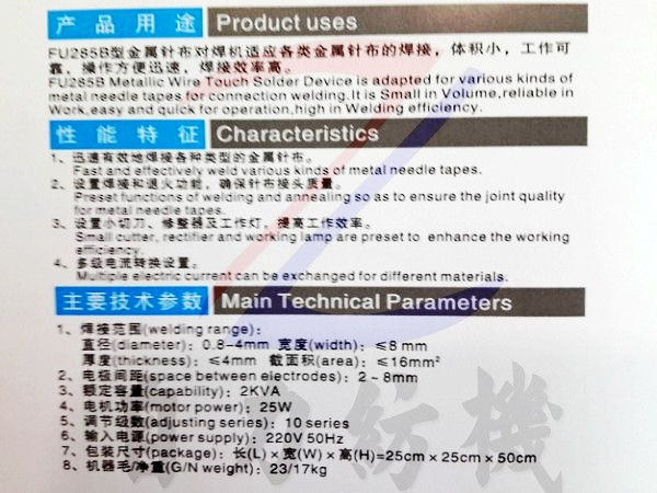 FU285B金屬針布焊接機(jī)的產(chǎn)品詳細(xì)介紹: